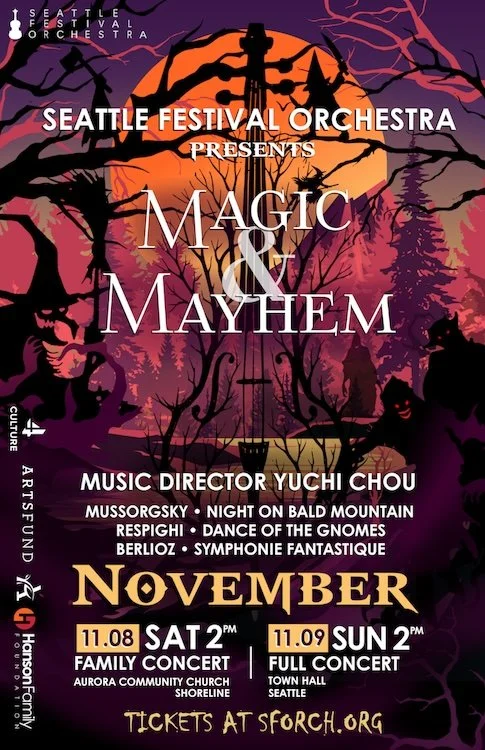 We open our season with Magic & Mayhem on Nov 8th & 9th, 2025. Check out our year’s line-up on our Concerts page!